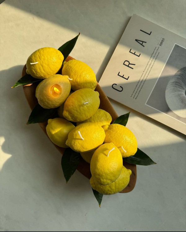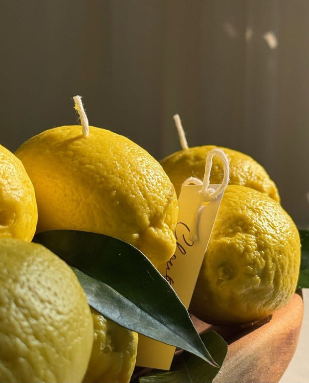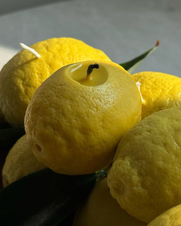 شمع دست ساز لیمویی رنگ زرد با رایحه لیمو