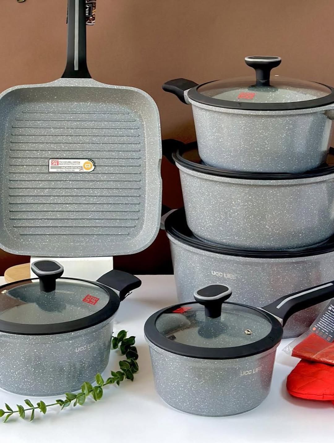 سرویسهای قابلمه گرانیتی کف چدن گریبلون آلمان با کف چدن سنگین و مقاوم برای پخش یکنواخت حرارت و دربهای سیلیکونی کاملاً آببندی شده. طراحی شیک و مدرن، مناسب برای هر دکور آشپزخانهای.