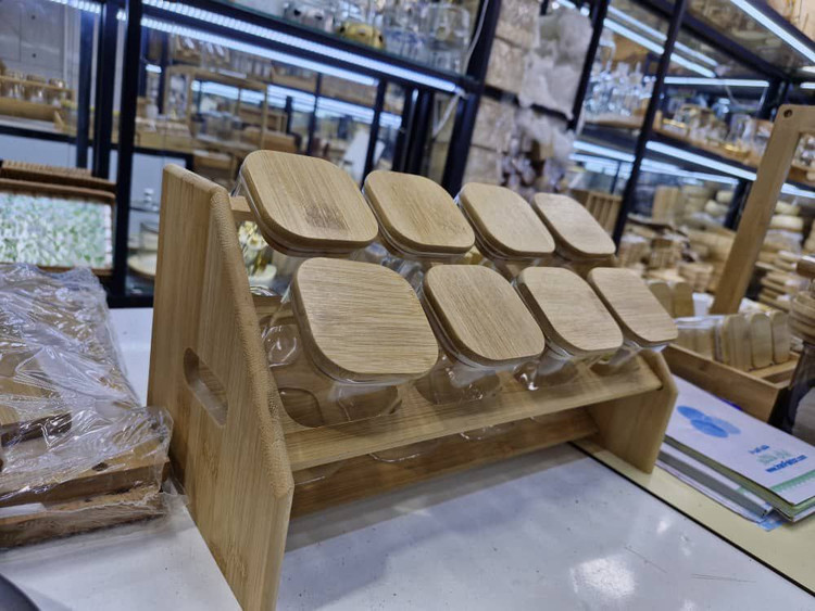 استند و بانکه ۸ عددی پیرکس و چوب بامبو