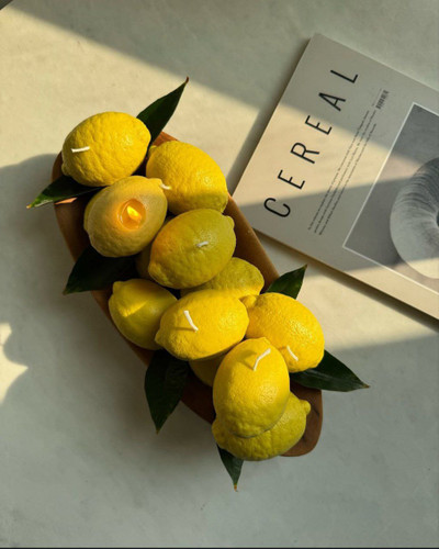 شمع دست ساز لیمویی رنگ زرد با رایحه لیموناموجود